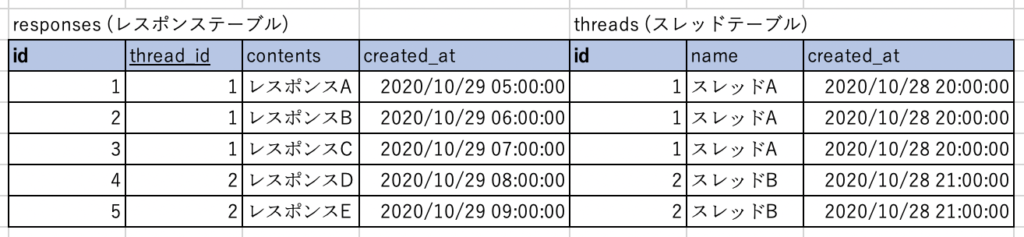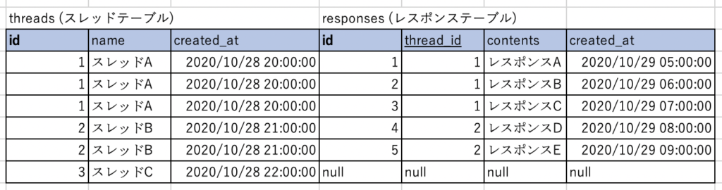 SELECT * FROM threads INNER JOIN responses ON threads.id = responses.thread_id;